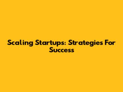 Scaling Startups: Strategies For Success