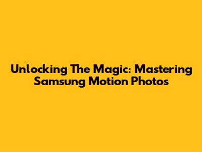 Unlocking The Magic: Mastering Samsung Motion Photos