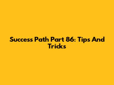 Success Path Part 86: Tips And Tricks