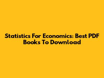 Statistics For Economics: Best PDF Books To Download