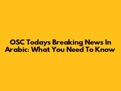 OSC Today's Breaking News In Arabic: What You Need To Know