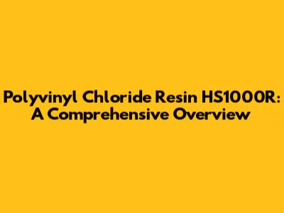 Polyvinyl Chloride Resin HS1000R: A Comprehensive Overview