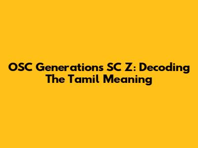 OSC Generations SC Z: Decoding The Tamil Meaning