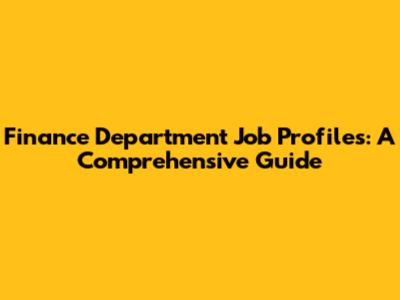 Finance Department Job Profiles: A Comprehensive Guide