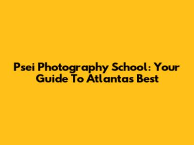 Psei Photography School: Your Guide To Atlanta's Best