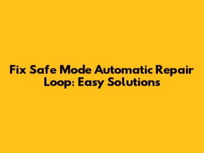 Fix Safe Mode Automatic Repair Loop: Easy Solutions