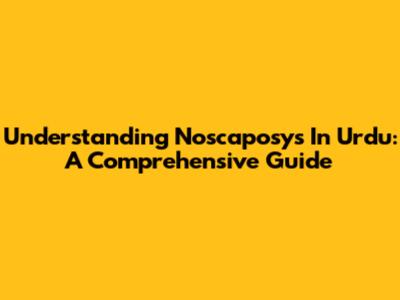 Understanding 'Noscaposys' In Urdu: A Comprehensive Guide
