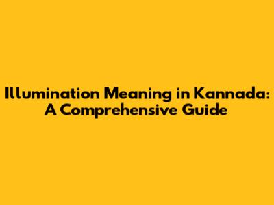 Hey guys! Ever wondered what "illumination" means in Kannada? Well, you're in the right place! Let's dive deep into understanding this word, its nuances, and how you can use it effectively. Understanding the meaning of illumination in Kannada not only enriches your vocabulary but also enhances your ability to communicate effectively in various contexts. This comprehensive guide will explore the different facets of the term, providing you with a clear understanding and practical usage examples.