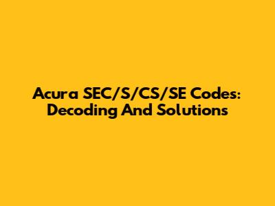 Acura SEC/S/CS/SE Codes: Decoding And Solutions