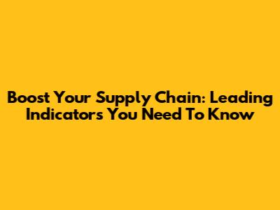 Boost Your Supply Chain: Leading Indicators You Need To Know
