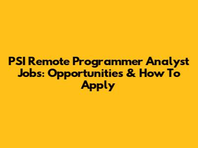 PSI Remote Programmer Analyst Jobs: Opportunities & How To Apply