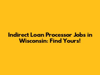 Where to Find Indirect Loan Processor Jobs in WI
