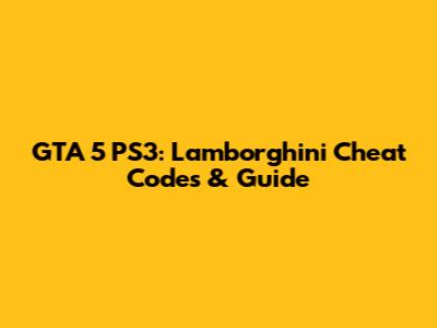 GTA 5 PS3: Lamborghini Cheat Codes & Guide