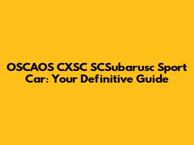 OSCAOS CXSC SCSubarusc Sport Car: Your Definitive Guide