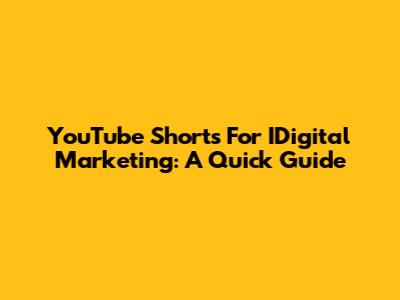 YouTube Shorts For IDigital Marketing: A Quick Guide
