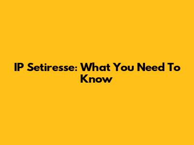 IP Setiresse: What You Need To Know