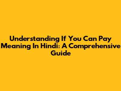 Understanding 'If You Can Pay' Meaning In Hindi: A Comprehensive Guide