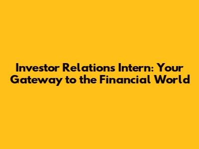 Hey guys! Ever wondered what it takes to be an investor relations intern? Maybe you've seen the term floating around and thought, "Hmm, sounds interesting... but what exactly do they do?" Well, buckle up, because we're about to dive deep into the world of IR internships! This role is a fantastic entry point for anyone keen on finance, communications, and the exciting dance between companies and their investors. We'll explore the nitty-gritty of the job, what you'll be doing, the skills you'll build, and how to snag one of these coveted positions. Consider this your friendly guide to everything investor relations intern related, perfect for those just starting out or considering a career shift. Get ready to level up your understanding and get inspired!