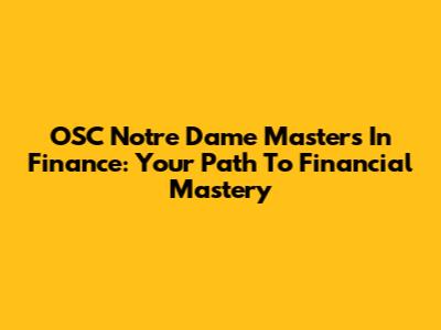 OSC Notre Dame Masters In Finance: Your Path To Financial Mastery