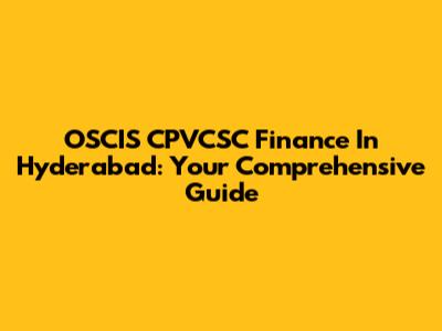 OSCIS CPVCSC Finance In Hyderabad: Your Comprehensive Guide