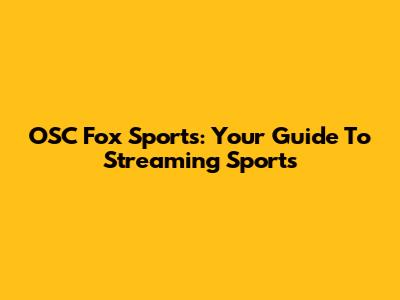 OSC Fox Sports: Your Guide To Streaming Sports