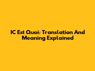 IC Est Quoi: Translation And Meaning Explained