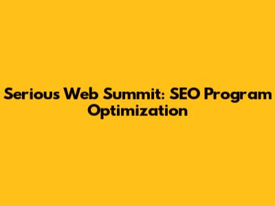 Serious Web Summit: SEO Program Optimization