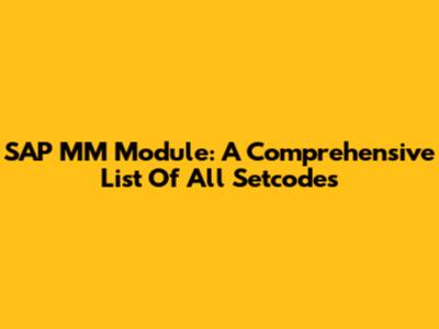 SAP MM Module: A Comprehensive List Of All Setcodes