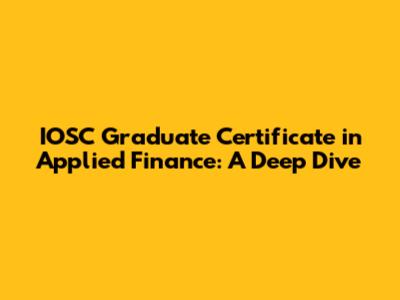 Hey finance enthusiasts! Let's talk about the IOSC Graduate Certificate in Applied Finance. This certificate is a fantastic springboard if you're looking to level up your career in the financial world. Whether you're a seasoned professional aiming for a promotion or a fresh graduate eager to break into the industry, this program is designed to equip you with the practical skills and knowledge you need to thrive. We will be exploring the benefits of this certificate, the curriculum, the career prospects it unlocks, and what makes it a worthy investment for your future.