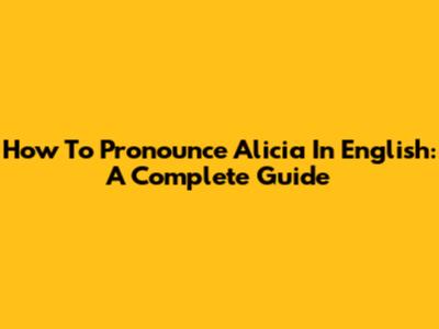 How To Pronounce Alicia In English: A Complete Guide