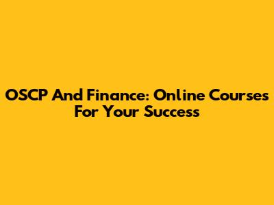 OSCP And Finance: Online Courses For Your Success