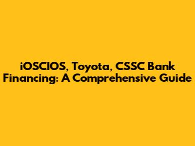 Hey guys! Ever wondered how iOSCIOS, Toyota, and CSSC Bank financing all come together? Well, buckle up because we're diving deep into this topic! Understanding the ins and outs of financing, especially when it involves different players, can be a game-changer. Whether you're eyeing a shiny new Toyota or just trying to make sense of the financial landscape, this guide is for you.