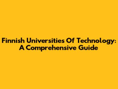 Finnish Universities Of Technology: A Comprehensive Guide