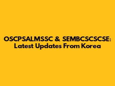 OSCPSALMSSC & SEMBCSCSCSE: Latest Updates From Korea