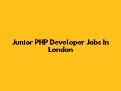Junior PHP Developer Jobs In London