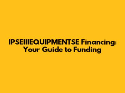Understanding Your Financing Needs for IPSEIIIEQUIPMENTSE