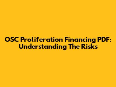 OSC Proliferation Financing PDF: Understanding The Risks