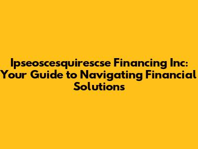 How to Assess if Ipseoscesquirescse Financing Inc is Right for You