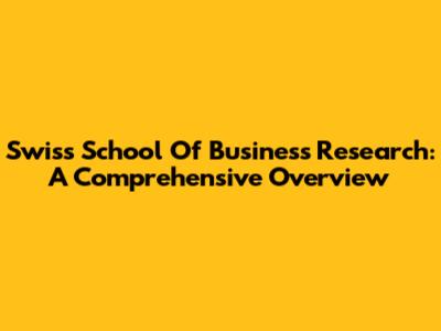 Swiss School Of Business Research: A Comprehensive Overview