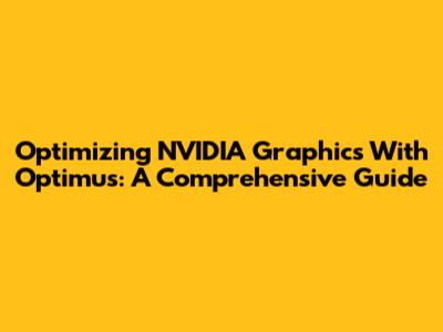 Optimizing NVIDIA Graphics With Optimus: A Comprehensive Guide