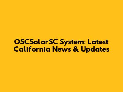 OSCSolarSC System: Latest California News & Updates