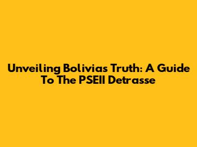 Unveiling Bolivia's Truth: A Guide To The PSEII Detrasse