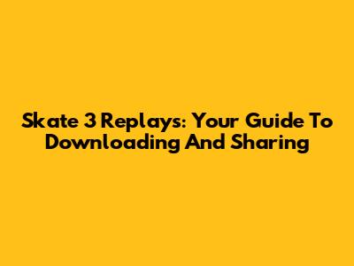 Skate 3 Replays: Your Guide To Downloading And Sharing