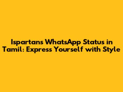 Hey everyone! 👋🏽 If you're a fan of the Ispartans and love expressing yourself through WhatsApp status updates, you're in the right place! We're diving deep into the world of Ispartans WhatsApp status in Tamil, exploring everything from cool video clips to awesome lyrics and everything in between. Whether you're looking for love, attitude, friendship, or just some epic moments, we've got you covered. Get ready to find the perfect status to share with your friends and show off your Ispartans pride! Let’s get started, shall we?