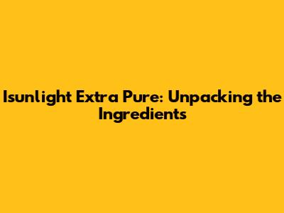 Hey guys, let's dive deep into Isunlight Extra Pure and really get to grips with what goes into this popular product. When we talk about Isunlight Extra Pure ingredients, we're not just looking at a list; we're examining the very essence of what makes it work and why people trust it. It's all about transparency and understanding, right? So, grab a cuppa, settle in, and let's break down these components, making sure we cover everything from the star players to the supporting cast. We want to know what’s actually in that bottle, and if it lives up to the 'extra pure' claim. This isn't just about listing chemicals; it's about understanding their purpose, their origin, and their benefits. We'll be looking at how each ingredient contributes to the overall efficacy and safety of Isunlight Extra Pure. So, if you've ever scrolled past the ingredient list and wondered, "What on earth is that?" or "Is this good for me?", you're in the right place. We're going to demystify it all, making complex scientific names feel a little more approachable. Get ready to become an ingredient-savvy consumer, armed with the knowledge to make informed decisions about the products you use. We’ll be exploring the science behind the blend, ensuring that by the end of this, you’ll have a crystal-clear picture of the Isunlight Extra Pure formula. It's crucial to know what you're putting on or in your body, and we're here to provide that clarity. We’ll also touch upon why certain ingredients are chosen over others, and what makes Isunlight Extra Pure stand out in a crowded market based on its carefully selected components. So, let's get started on this ingredient journey!