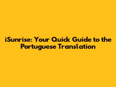 Hey guys! Ever wondered how to say "iSunrise" in Portuguese? Well, you're in the right place! Let's dive into everything you need to know about translating "iSunrise" into Portuguese. Whether you're planning a trip, working on a project, or just curious, this guide will give you all the details. So, grab your coffee, and let's get started!