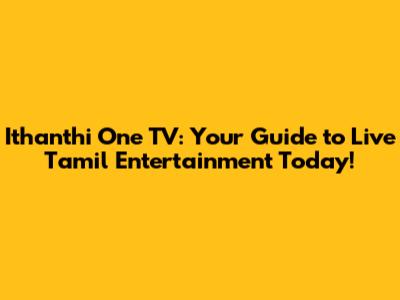 Hey there, entertainment enthusiasts! Are you searching for Ithanthi One TV live today Tamil content? You've landed in the right place! We're diving deep into everything you need to know about accessing live Tamil channels on Ithanthi One TV, ensuring you never miss your favorite shows, news updates, or exciting programs. Whether you're a seasoned viewer or new to the platform, we've got you covered with a comprehensive guide to enjoying the best of Tamil television. Get ready to explore the world of Tamil entertainment and discover how easy it is to stay connected with Ithanthi One TV.