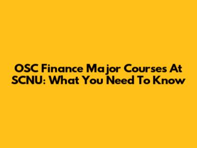 OSC Finance Major Courses At SCNU: What You Need To Know