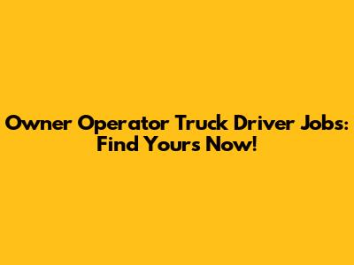 Owner Operator Truck Driver Jobs: Find Yours Now!