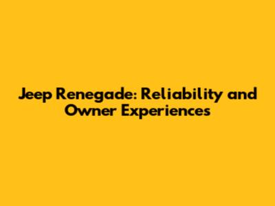 Understanding Jeep Renegade Reliability